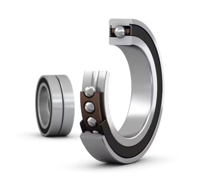 These matched sets of two super-precision, high-speed, E design, single row angular contact ball bearings with seals are available in a variety of arrangements. Compared to the equivalent SKF B design high-speed bearings, these have a slightly higher speed capability and can accommodate heavier loads.
