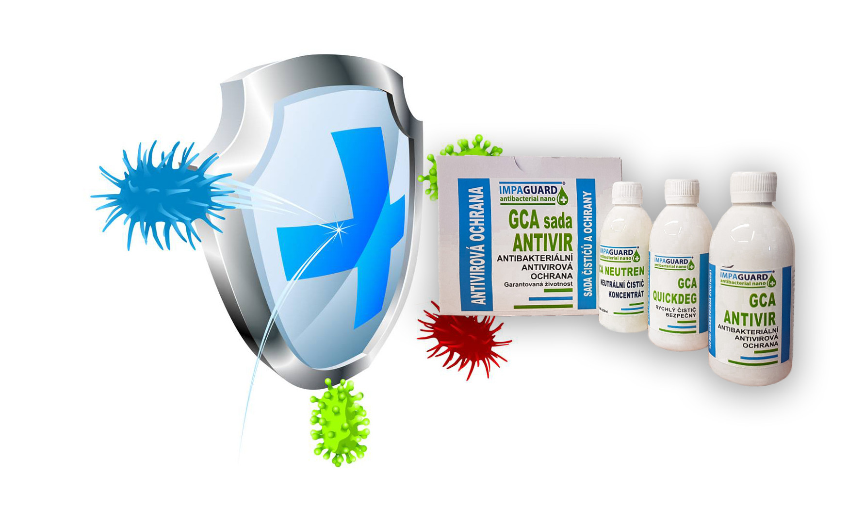 IG GCA ANTIVIR je specificky vyvinutá nano ANTIVIROVÁ a ANTIBAKTERIÁLNÍ ochrana pevných materiálů (sklo, keramika, glazovaná keramika, smalt, mramor, porcelán, žula, barvy, plast, laky a další nenasákavé povrchy jako např. barvené kovy, nerez, hliník a další).