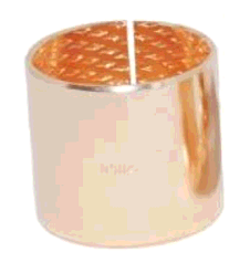 Wrapped bronze bushings are particularly well suited for applications where high levels of contamination make relubrication necessary. The sliding surface of an wrapped bronze bushing contains diamond shaped pockets that must initially be filled with grease. The pockets act as reservoirs to progressively release lubricant during operation. We offer a full range of both straight and flanged wrapped bronze bushings