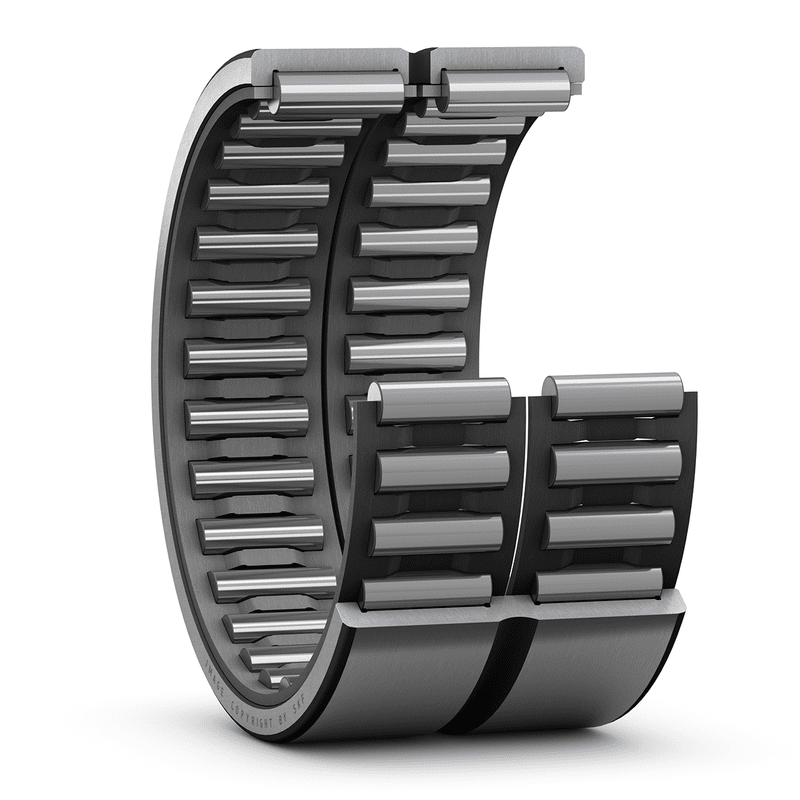 Needle roller bearings are bearings with cylindrical rollers that are small in diameter relative to their length. The modiied roller/ raceway proile prevents stress peaks to extend bearing service life.