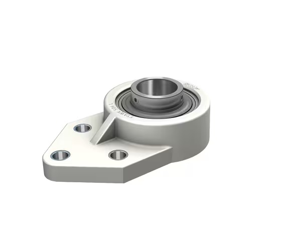 These three-bolt flanged ball bearing units are designed especially for the food and beverage industries. They are chemical resistant, lightweight and strong. The bearing unit consists of an insert bearing, with an extended inner ring and set screw locking, and is suitable for applications where the direction of rotation is constant or alternating. The bearing is mounted in a composite housing, which can be bolted to a machine wall or frame. Ball bearing units can accommodate moderate initial misalignment, but normally do not permit axial displacement.