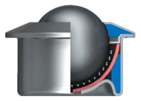 Kuličková podpěra EURO nerez provední s koulí průměr 45mm. Průměr jednotky pro uložení 62mm. Celková výška 53,5mm. Nostnost 250kg. Se zvyšenou odolností proti nárazu.