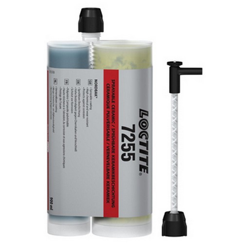 LOCTITE 7255 stříkatelná keramika je bezrozpouštědlový, keramikou plněný nátěr na bázi dvousložkového epoxidu. Je určen zejména k ochraně kovových povrchů před korozívními a abrazívními vlivy. Používá se jako hladký, lesklý ochranný nátěr na kovových materiálech nebo jako vrchní nátěr s malým třením na kompozitních materiálech proti opotřebení Loctite Nordbak. Typické aplikace jsou opravy a ochrana výměníků tepla, kondenzátorů, výstélek nádrží, žlabů, násypek, těles armatur nebo těles a oběžných kol čerpadel.