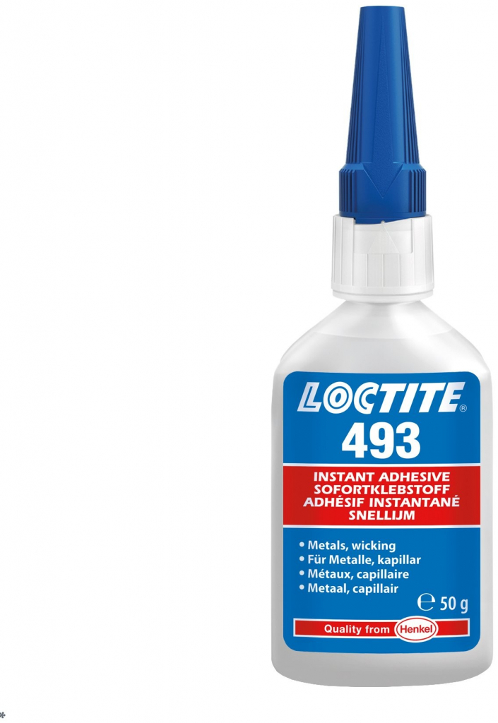 Loctite 493 je produkt - vteřinové lepidlo, určené pro běžné lepení. Je zejména vhodný pro lepení kovových povrchů. Má velmi nízkou viskozitu - umožn jeho zatečení hluboko do spáry.