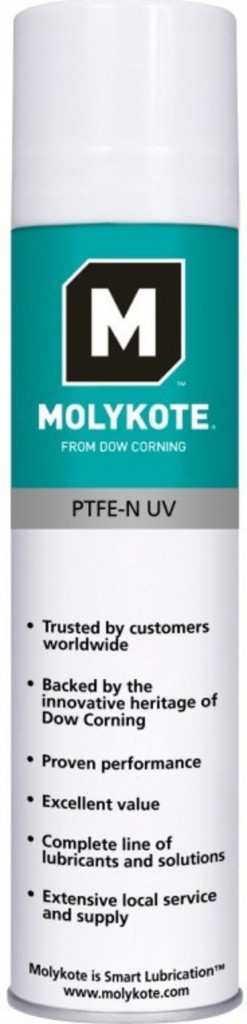 Molykote PTFE-N-UV je na vzduchu vytvrzující suché mazivo.