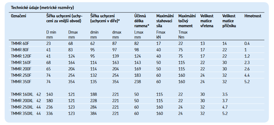 Čelisťové stahováky s otočnými rameny řady TMMR F
