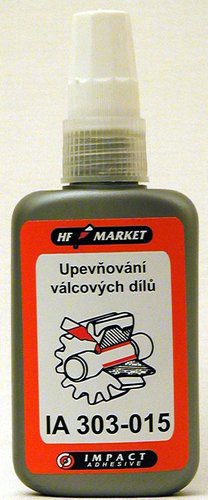 IA 303-015 je jednosložkové anaerobní lepidlo střední viskozity. Zajišťuje zvláště vysokopevnostní spojení suvných a lisovaných válcových částí tam, kde se vyžaduje vysoká spolehlivost. IA 303-015 rychle a spolehlivě vytvrzuje na většině kovových povrchů a těsní vůči většině průmyslových kapalin. Vytvrzení může být urychleno použitím aktivátorů AC 64. Vysokopevnostní lepidlo IA 303-015 těsní vůči propouštění a zabraňuje korozi. Odolává únavě materiálu.