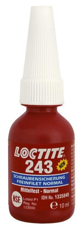 Loctite 243 zajišťuje závity, matice a šrouby proti samovolnému uvolnění. Je určen pro zajišťování a utěsňování závitových spojů, které mají být demontovatelné běžným ručním nářadím. Produkt vytvrzuje bez přístupu vzduchu a zabraňuje uvolnění či prosakování spoje, způsobené vibracemi a rázy.