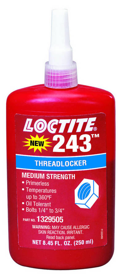 Loctite 243 je nejprodávanější zajšťovač na trhu. Je vhodný pro méně aktivní povrchy, jako je nerezová ocel nebo pokovené povrchy. Produkt nabízí zvýšenou odolnost vůči teplotě a větší toleranci k mírně zamaštěným povrchům. Tixotropní charakter zabraňuje jeho stékání z místa nanesení.