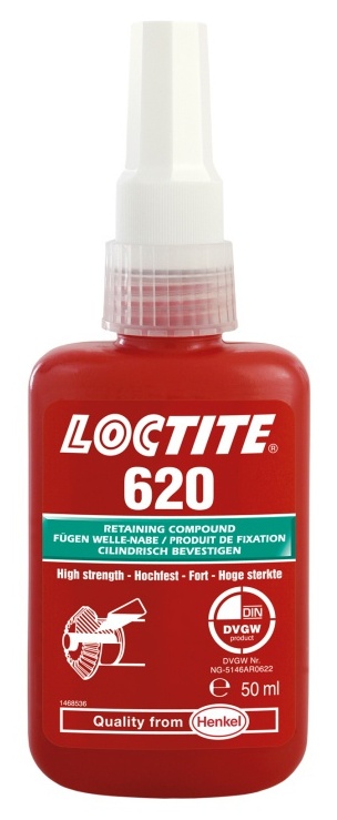 Loctite 620 je určen pro pevnostní a teplotě odolné spojování lícovaných válcových součástí. Produkt vytvrzuje bez přístupu vzduchu ve spáře mezi lepenými kovovými povrchy a zabraňuje uvolnění či prosakování spoje, způsobené vibracemi a rázy.