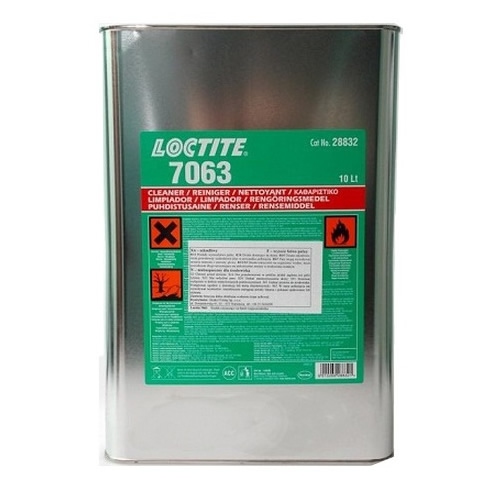Loctite 7063 je rozpouštědlový čistič, který neobsahuje chlórové a fluórové uhlovodíky, určený pro čištění a odmašťování povrchů, které mají být lepeny produkty. Může být rovněž použit pro čištění a odmaštění strojních součástí během údržbářských operací. Univerzální čistící prostředek na součástky, který nezanechává zbytky - ideální pro použití před lepením nebo aplikací těsnících hmot. Loctite 7063 lze použít na kovy, sklo, pryž a většinu plastických hmot a nátěrů. Rychle se odpařuje, nezanechává žádný film a nekoroduje.