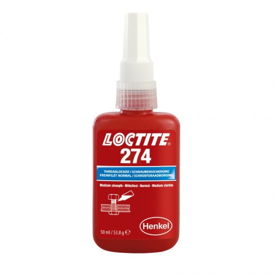 Loctite 274 je určen pro zajišťování a utěsňování závitových spojů, které mají být demontovatelné běžným ručním nářadím. Vytvrzuje bez přístupu vzduchu ve spáře mezi lepenými kovovými povrchy a zabraňuje uvolnění či prosakování spoje, které je způsobené vibracemi a rázy.