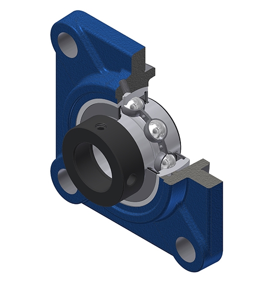 Přírubový litinový domeček s ložiskem na 2 šrouby. Ložiskové těleso.