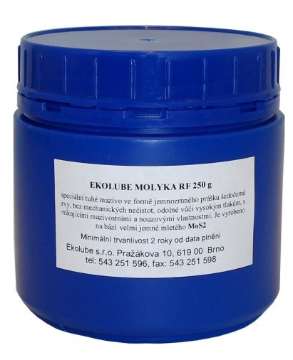 Je vyrobeno na bázi velmi jemně mletého MoS2 vysoké čistoty. Používá především jako výborné suché mazivo pro apretaci kluzných ploch zejména před jejich záběhem nebo montáží. Vzhledem ke svým specifickým užitným vlastnostem, se používá jako mazací prostředek vyhraněného použití, případně jako separační prostředek při některých speciálních technologických operacích, či jako separátor, zajišťující dosažení rozebíratelnosti strojních dílů, vystavených teplotním či jiným vlivům. V technické praxi se využívá k apretaci kluzných elementů strojů a zařízení namáhaných vysokými tlaky a k mazání strojních součástí zejména tepelně exponovaných. Usnadňuje montáž a demontáž rozebíratelných spojení (matice, šrouby aj.) a urychluje záběh namáhaných strojních částí (kluzná uložení, ozubené převody,čepy aj.). Často se uplatňuje i jako mazivo a separátor při tváření kovů. Rovněž je možné využití tohoto produktu jako přísady do některých olejů (případně i do některých plastických hmot a maziv) sloužící ke zlepšení vysokotlakých, třecích a nouzových vlastností. Tento produkt je schopný funkce až do teplot rozkladu MoS2, tj. na vzduchu do cca 360 až 400 °C, ve vakuu do cca 1100°C a do cca 1300°C v inertních plynech. Odolný proti kyslíku a záření o vysokých energiích. Technická data: Barva šedočerná MoS2 mikropudr 98,5% MoO3 (%) 0.05 Fe (%) 0.17 SiO2 (%) 0,06 Olej (%) 0,16 H2O 0,15 Číslo kyselosti (mg KOH/g) 0,23 Koroze na mědi žádná Průměrná velikost částic (D50 μm) 4,2 Fisherovo číslo (μm) 0,65-0,8 Sypná hustota (kg/m3 ) 750 Rozsah teploty použití na vzduchu -185°C až +400°C při tváření kovů. Rovněž je možné využití tohoto produktu jako přísady do některých olejů (případně i do některých plastických hmot) sloužící ke zlepšení třecích a nouzových vlastností. Tento produkt je schopný funkce až do teplot rozkladu MoS2, tj. do cca 360 až 390 °C.