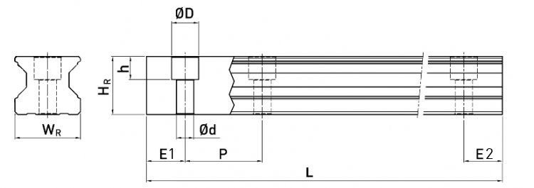 Kolejnice s průchozími připevňovacími otvory pro montáž shora. Lineární vedení HIWIN řady RG používá jako nositele valivého pohybu válečky a… Celý popis