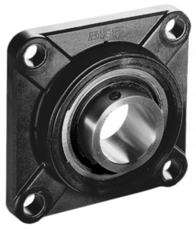 Přírubové ložiskové jednotky Y, těleso Y-TECH, čtvercová příruba, zajištění stavěcím šroubem. Plastový domeček. Ložiskové těleso.